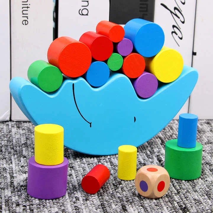 Throw Dice inturn, based on the dice color, stack same color blocks. A fun educational Toy to tech children hand-eye coordination, hands-on ability,shape recognition,logical thinking ability, color recognition.